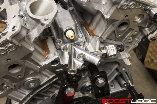 The Boost Logic Billet Oil Distribution Block with external sensor support is the key to ensuring a reliable motor. The GTR factory oil pressure sensor maxes at 120 psi and has not had a great track record for reliability. The OEM sensor has been known to fail and give improper readings, maxed out or zero pressure readings which can be hard to diagnose. Utilizing an aftermarket sensor, we can bypass these issues entirely with a proper reading. With our external sensor, you can wire the Power Steering Pressure Voltage sensor to monitor oil pressure with our supplied sensor via your Cobb Accessport